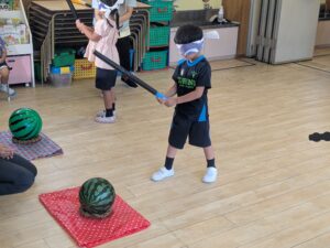 2025年8月21日 8/18〜8/21の4日間、夏季保育を行いました。プール指導・すいか割り・夏まつりと夏ならではの行事を楽しみ、8月生まれのお誕生日会も行いました。とても楽しく充実した4日間となりました。