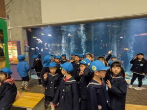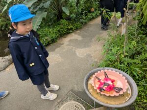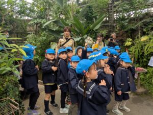 年長組さんが『足立生物園』へ卒園遠足に行ってきました。広い公園でゲーム大会をし、生物園ではモルモットや亀、魚を観察しました。大温室ではたくさんの放し飼いの蝶を間近で見ることができ、興味や関心を持ちました。皆で食べたお弁当もとても美味しかったです。