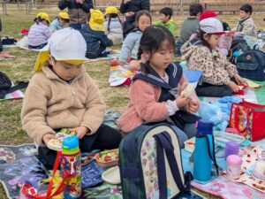 13日(金)に年中組さんが園バスに乗車して『舎人公園』に遠足に行ってきました。広い芝生広場でゲームをしたり、様々な遊具でたくさん遊ぶことができ、楽しい遠足となりました。