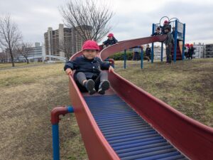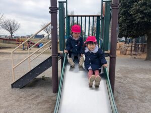 本日、つぼみ組(満3歳児)と年少組が園バスに乗車して『新田さくら公園』に遠足にいってきました。長〜いローラー滑り台や楽しい遊具に大興奮。たくさんたくさん遊んできました。